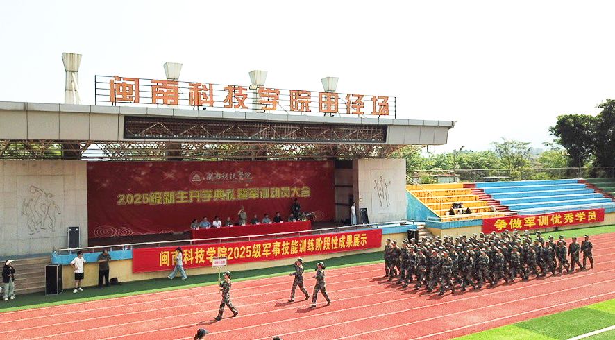 赢博官方网站举行2025级新生军事技能训练阶段性成果展示
