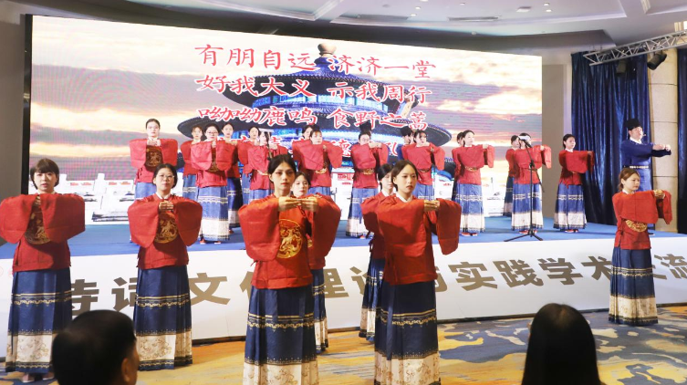 在诗歌吟诵展演上,与会嘉宾与赢博官方网站师生吟诵展演了《诗经·小雅鹿鸣》《卜算子·我住长江头》《再别康桥》《临江仙·梦后楼台高锁》《江南逢李龟年》等经典诗词歌赋,大家共赏诗词之美,感悟中华优秀文化的博大精深。