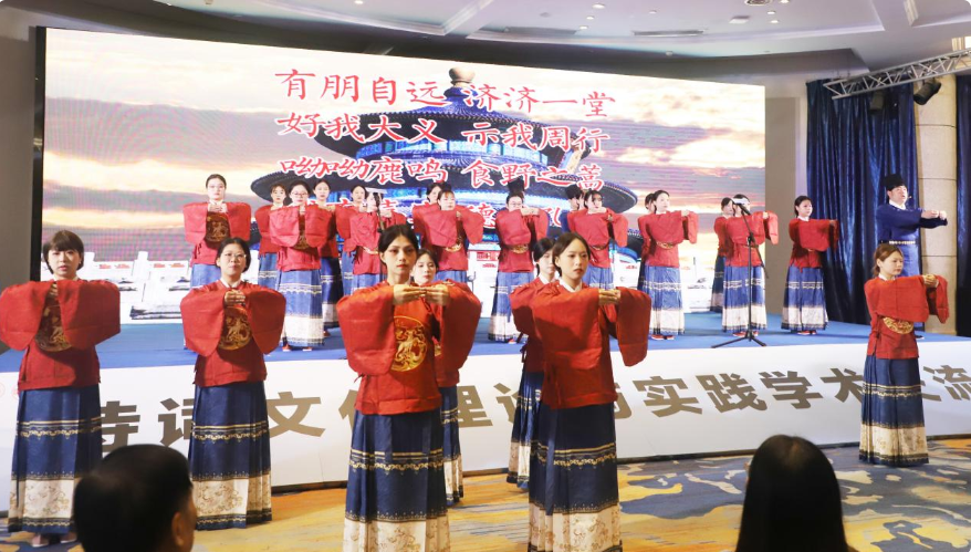 在诗歌吟诵展演上,与会嘉宾与赢博官方网站师生吟诵展演了《诗经·小雅鹿鸣》《卜算子·我住长江头》《再别康桥》《临江仙·梦后楼台高锁》《江南逢李龟年》等经典诗词歌赋,大家共赏诗词之美,感悟中华优秀文化的博大精深。