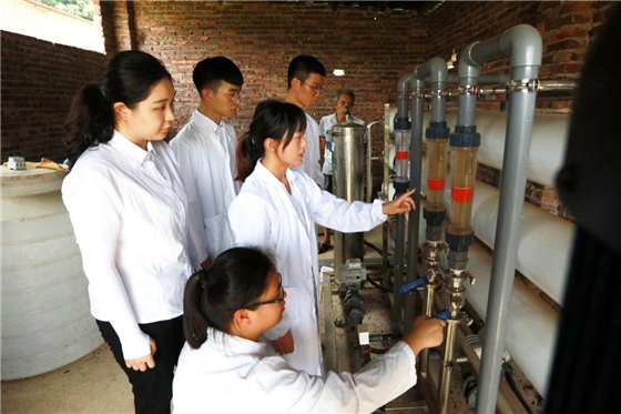 团队采集企业使用污水处理设备后的水样进行检验