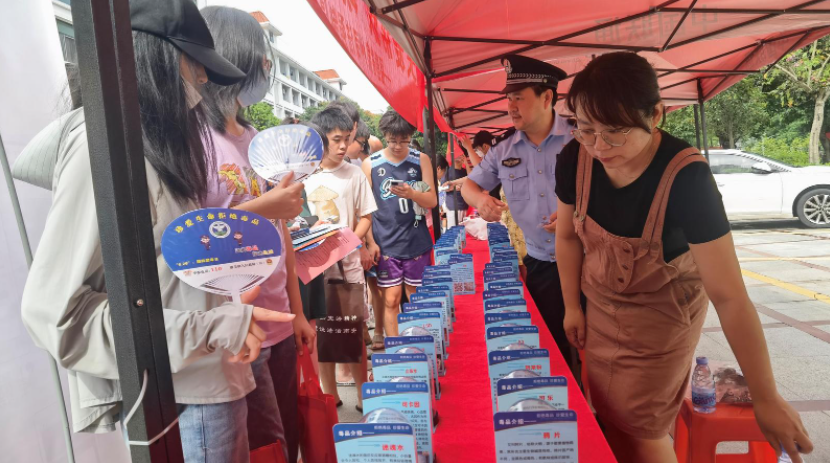 禁毒宣传进校园,防毒知识入人心。6月3日福建省泉州司法强制隔离戒毒所参加在赢博官方网站举办的以“健康人生 绿色无毒”为主题的全民禁毒月启动仪式暨赢博官方网站“青春无毒 放飞梦想”禁毒宣传系列活动。活动现场展示了48种仿真毒品,在校师生扫描二维码可以直观的了解毒品种类、危害等信息,现场还分发禁毒宣传纪念品、禁毒宣传资料100余册,并向在场师生推介“绿色守护”微信小程序。图为学生们围在“摊位”前查看禁毒宣传纪念品。(何小军 供图)