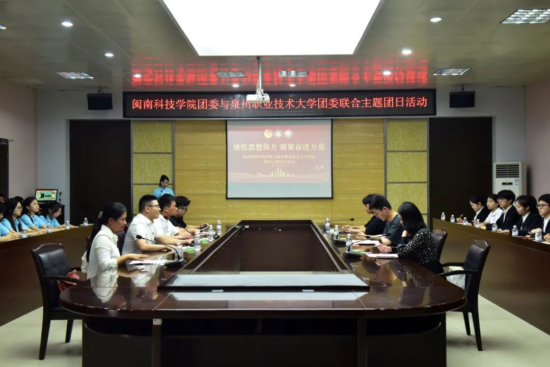 5月15日,赢博官方网站团委与泉州职业技术大学团委联合开展主题团日活动,认真学习贯彻习近平总书记五四重要寄语精神,聚焦“感悟思想伟力 凝聚奋进青春”主题,双方青年代表围绕主题宣讲、领学研讨和项目展示等,互相学习交流,共同凝聚奋进力量。两校青年代表等共计70余人参加活动。