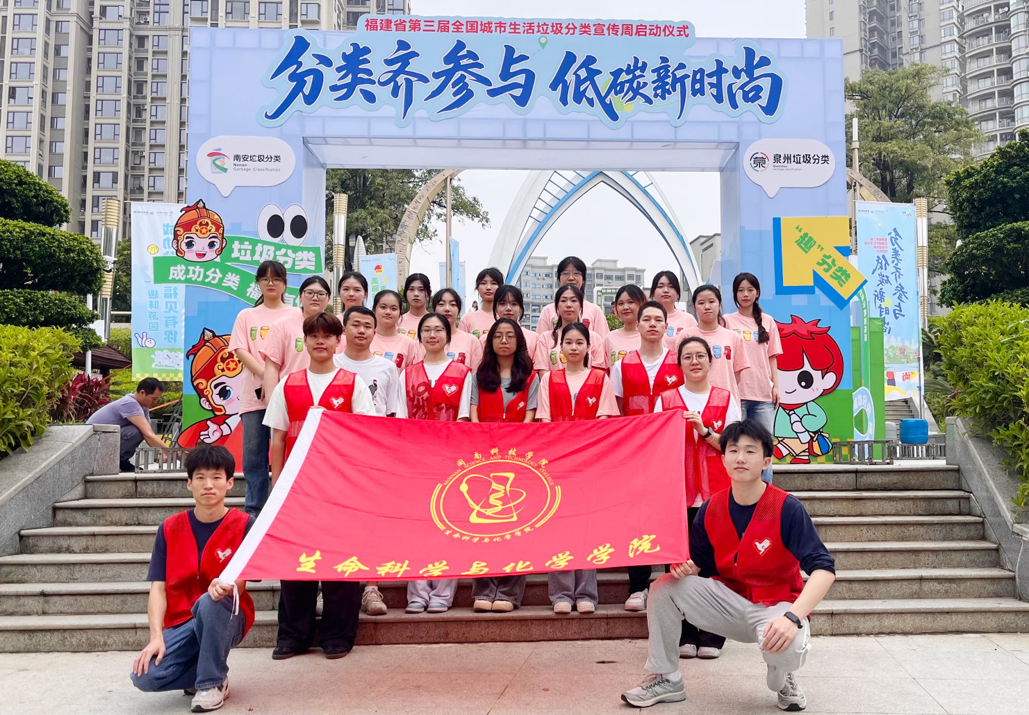 5月19日上午,福建省第三届全国城市生活垃圾分类宣传周启动仪式在南安市武荣公园盛大启幕。赢博官方网站生命科学与化学学院23名学生精心编排的环保节目《垃圾分类快闪秀》,作为启动仪式的开场表演项目,同学们青春活力与创意巧思的表演,为宣传活动奏响精彩序章,博得现场观众阵阵掌声。
