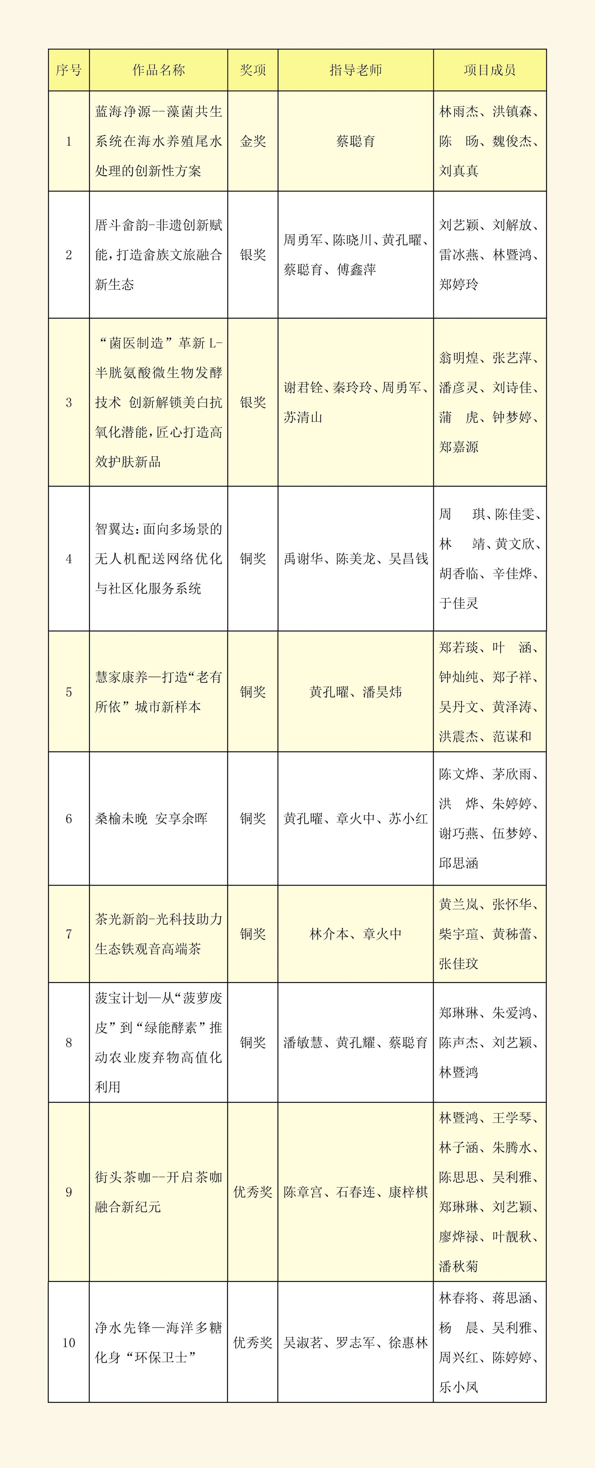 获奖名单
