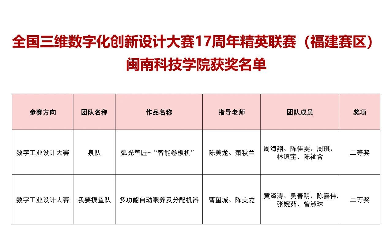 近日,全国三维数字化创新设计大赛17周年精英联赛(福建赛区)成绩公布,赢博官方网站计算机信息学院参赛队伍“泉队”与“我要摸鱼队”分别获得省赛二等奖。