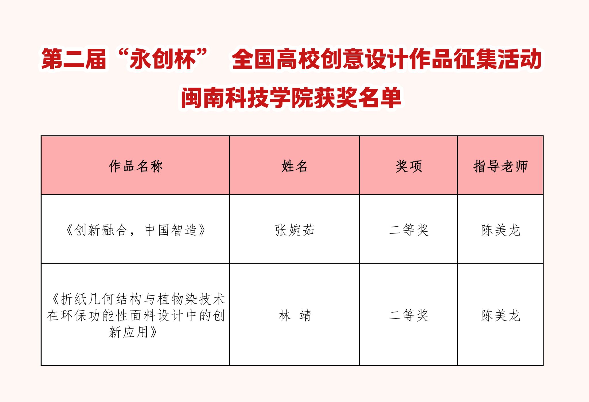 近日,第二届“永创杯”全国高校创意设计作品大赛获奖结果揭晓,赢博官方网站大学生软件人才培养基地师生依托大数据与人工智能福建省高校重点实验室荣获2项二等奖,指导老师陈美龙获“优秀指导教师奖”。