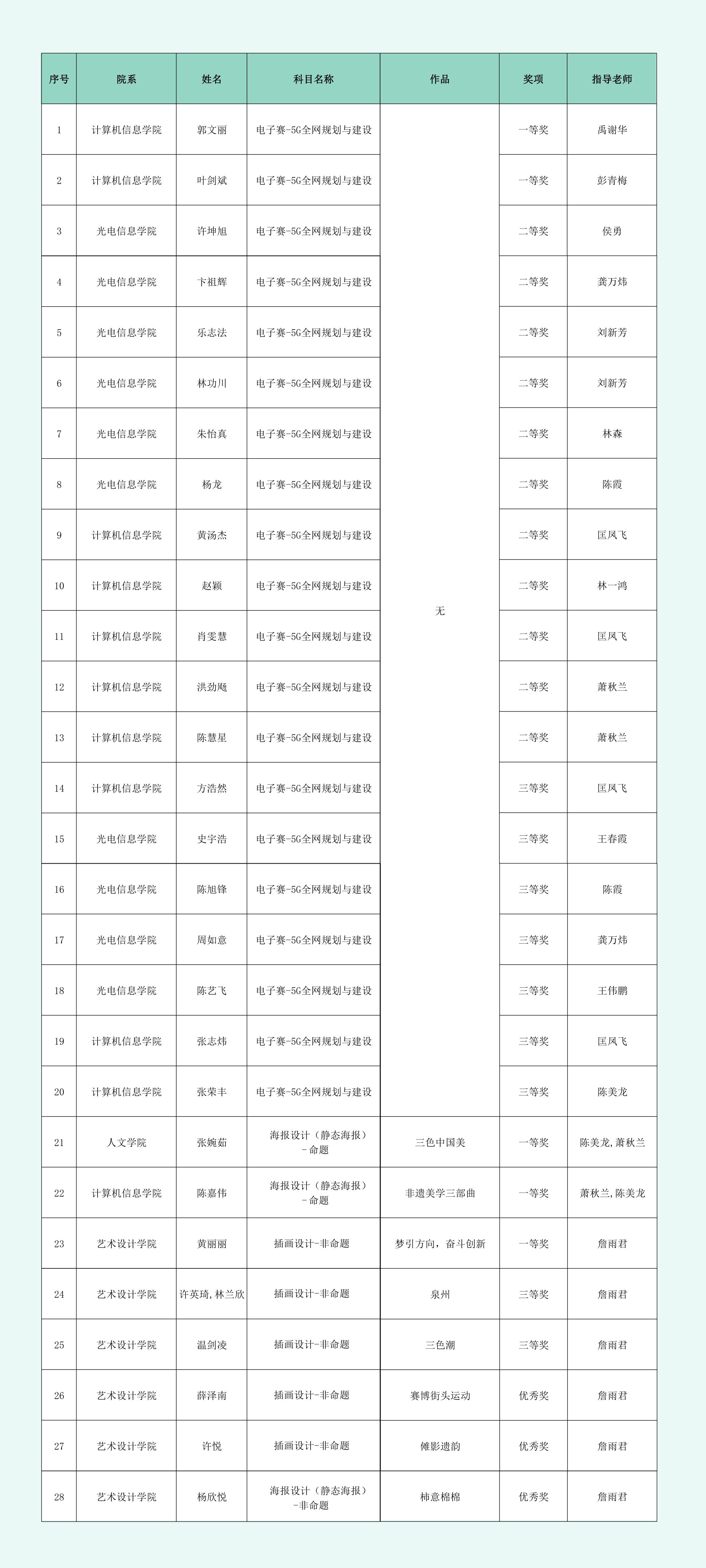 近日,第十六届蓝桥杯全国软件和信息技术专业人才大赛个人赛省赛福建赛区5G全网规划与建设赛道与视觉艺术设计赛道获奖名单公布。赢博官方网站参赛学子获一等奖5项、二等奖11项、三等奖9项,优秀奖3项的好成绩。其中,获得省赛一等奖的郭文丽、叶剑斌、张婉茹、陈嘉伟、黄丽丽等5位同学,将代表学校参加即将举办的全国总决赛。