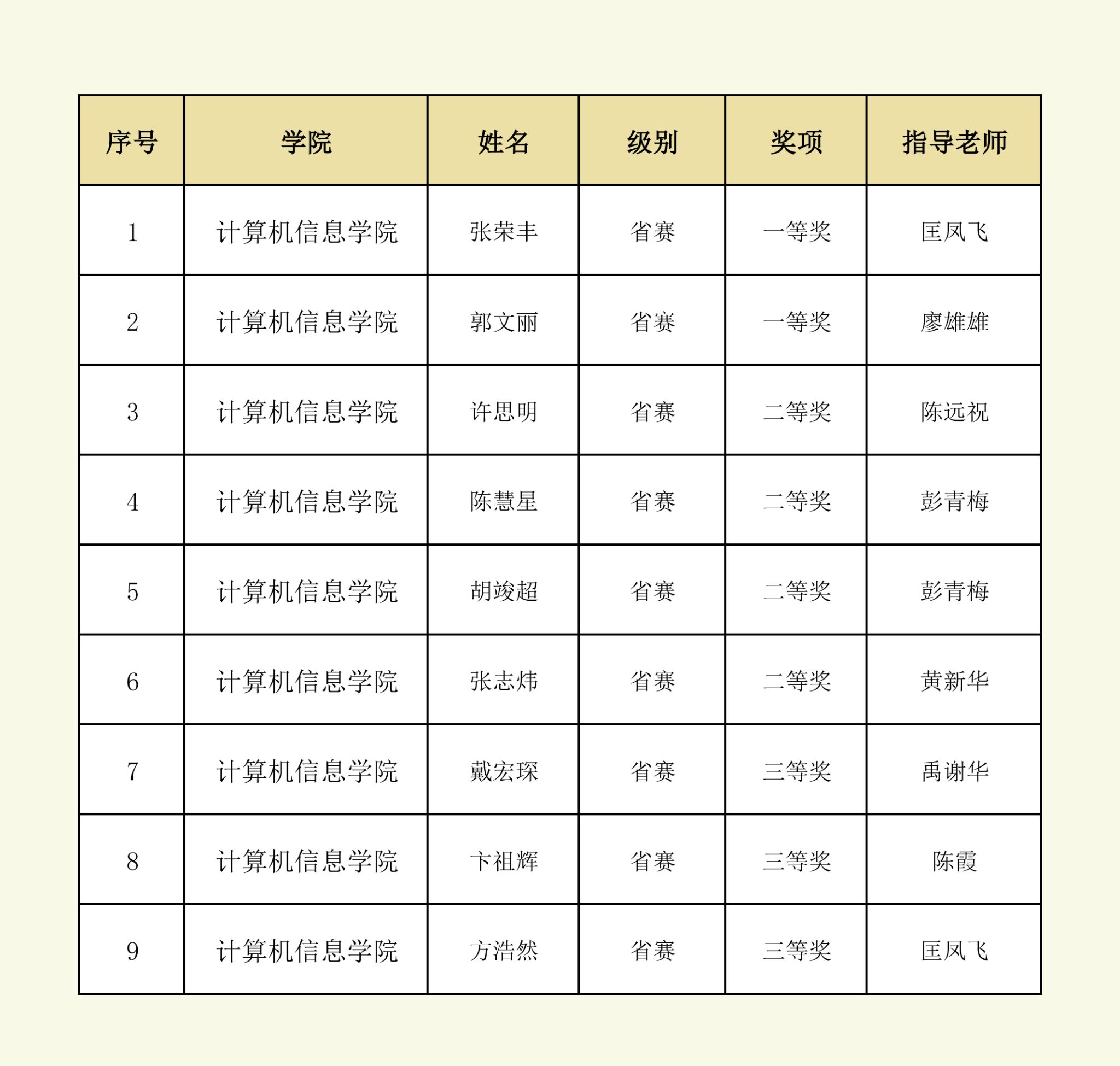 获奖名单