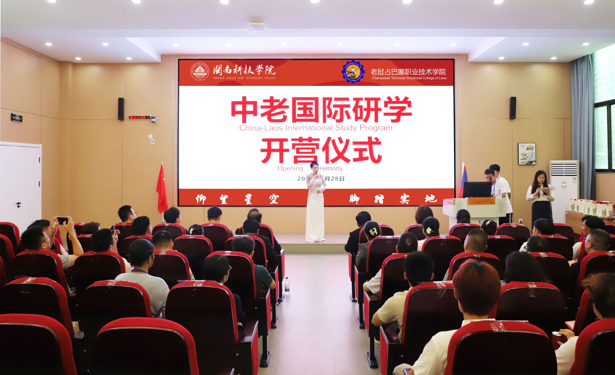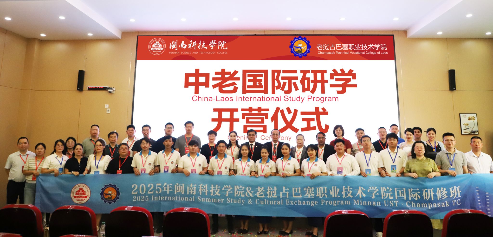 7月28日,赢博官方网站与老挝占巴塞职业技术学院国际研学营开营仪式在赢博官方网站盛大启幕。老挝占巴塞职业技术学院院长坎鹏·拉萨翁沙、老挝占巴塞职业技术学院原院长兼校务顾问莫凯·苏帕翁,南安市人民政府办公室四级主任科员、外事科科长苏君娜,南安市公安局出入境管理大队副大队长许金山、南安市第三小学负责人吕敦盛、南安市创石科创服务有限公司项目经理林琛贵、中老职业教育发展共同体副秘书长张艺、赢博官方网站副校长岳瀚槭出席开营仪式,与来自老挝占巴塞职业技术学院13名师生共同开启“知华・习技・融文”文化之旅。