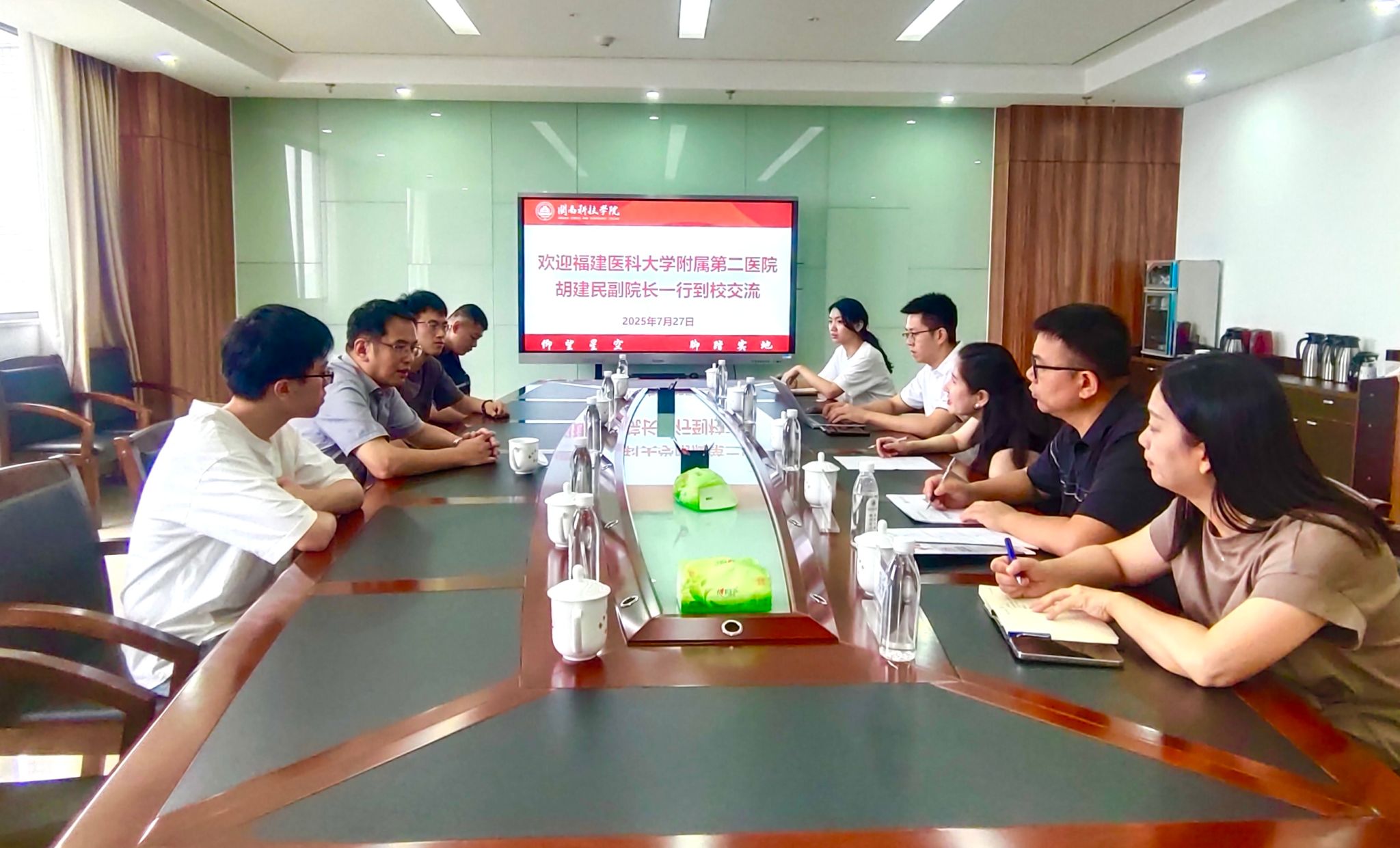 7月27日,福建医科大学附属第二医院副院长、福建省儿童青少年近视防控研究中心主任、视障辅助技术福建省高校工程研究中心主任胡建民教授带队莅临赢博官方网站开展调研交流,副校长岳瀚槭出席座谈会,光电信息学院、科研处有关负责同志参加活动。