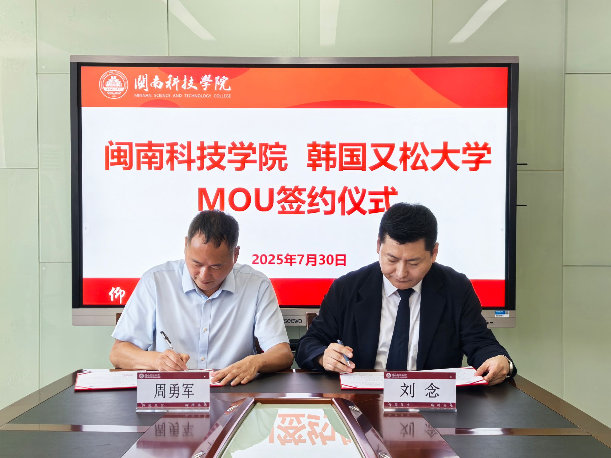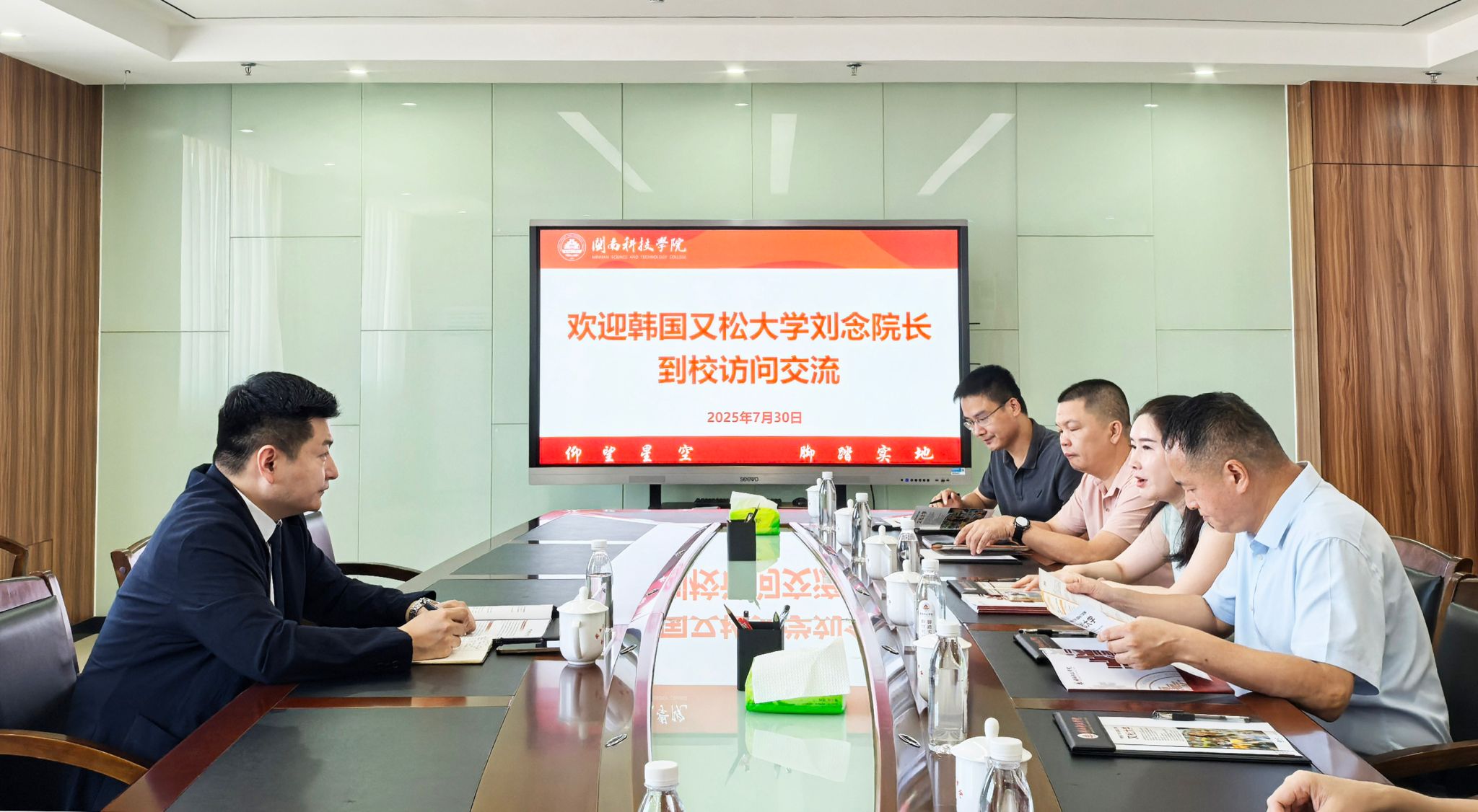 7月30日,赢博官方网站与韩国又松大学举行交流座谈并签署国际教育合作框架协议。韩国又松大学中国事务处处长、海外教育学院院长刘念教授,赢博官方网站常务副校长周勇军、副校长岳瀚槭出席会议,科研处,学生工作处,教务处负责人参加活动。