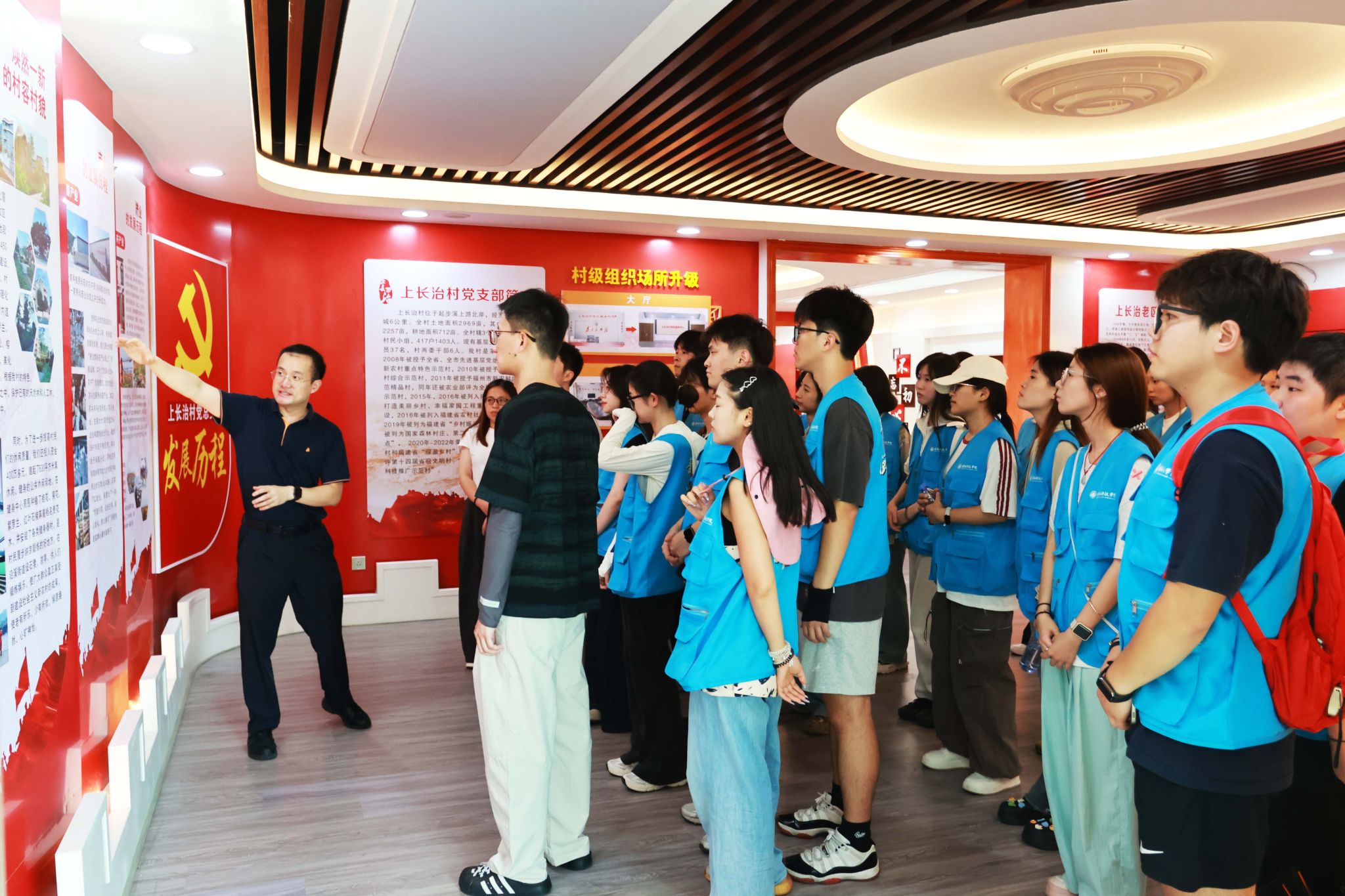 广大青年学子追寻红色足迹,感悟思想伟力,在革命历史中汲取奋进力量。校团委“青马工程”暑期社会实践队走进福州市罗源县起步镇上长治村红色基地,通过沉浸式学习革命先烈英雄事迹、传承发扬“三黄世家”推进乡村文明建设中的红色故事,齐唱《唱支山歌给党听》等形式,追忆峥嵘岁月,感悟红色文化魅力,汲取奋进力量。