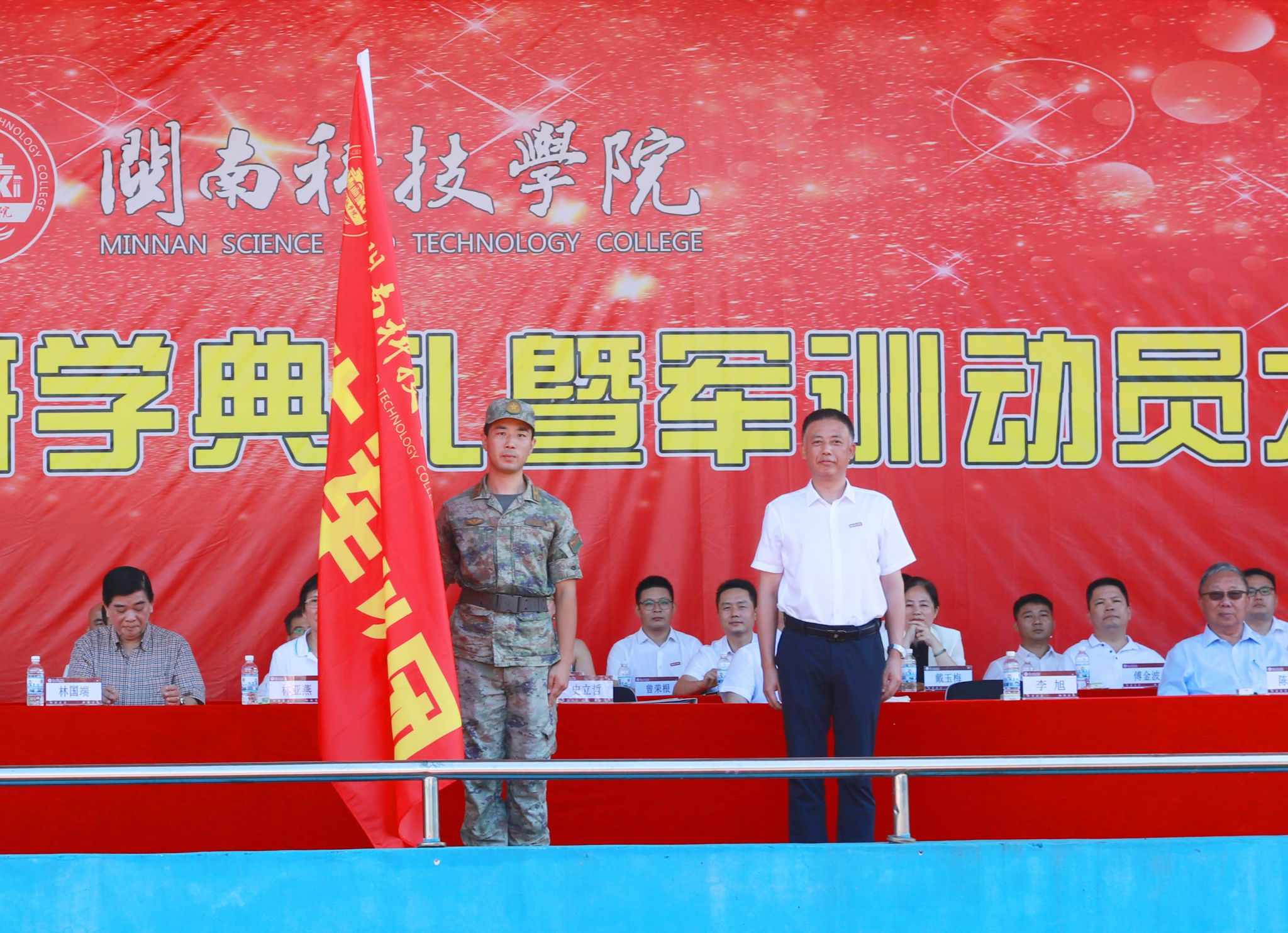 9月21日上午,赢博官方网站2025级新生开学典礼暨军训动员大会在康美校区隆重举行。军训承训部队史立哲少校、柳宏杰上尉;学校董事长、法人代表林亚燕,执行董事长林国端,副董事长戴宽南,原名誉董事长苏世选,原副董事长陈光曦等;校领导李旭、袁自煌、周勇军、林树生,校长助理王育海、刘武强,行政职能有关部门负责人,各二级学院党政主要负责人出席典礼,教师代表、新生辅导员、老生代表、2025级全体新生参加典礼。典礼由校党委副书记林树生主持。