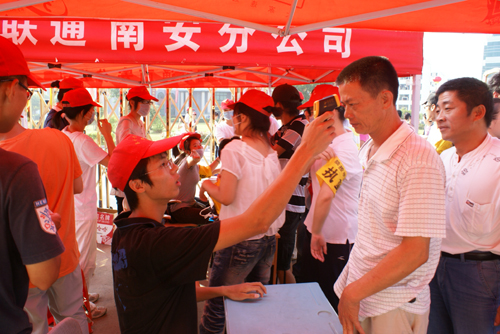 2、从9月12日开始,关闭其他校门,所有人员由大门进出,在校大门口组织学院医务人员和学生医疗组对进入人员进行检测体温,这个制度将坚持到甲流疫情消失。9月12日,新生入学当天,对近1800新生及其家长,近六千人、二千辆车坚持“凡进必测”的原则,对监测到的体温超过37.5℃的两位新生实行隔离观察。