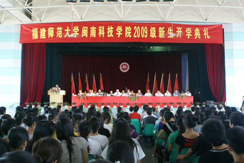 金秋时节,校园一片喜气洋洋。9月13日上午,我院在学生活动中心隆重举行福建师范大学赢博官方网站2009级新生开学典礼。南安市委副书记、教育工委书记曾焕楷先生,赢博官方网站常务副董事长戴新民先生,福建师范大学副校长许明教授,《人民日报》事业发展部副主任黄敬先生,南安市教育局局长吴亚明先生,南安市外经贸局局长柯文宝先生,南安市康美镇党委书记王强乐先生,南安市康美镇镇长吴长流先生、学院法人代表戴宽南先生、福建师范大学办公室主任郭警修先生、学工部部长廖深基先生、后管处处长张振华先生、教务处副处长陈祖祺先生、团委书记涂荣先生、闽台研究中心主任谢必震教授等领导、嘉宾出席了开学典礼。各合作学院领导、专业负责人、我院全体党政领导及各系部负责人也参加了典礼。开学典礼由学院党委常务副书记林国庆主持。
