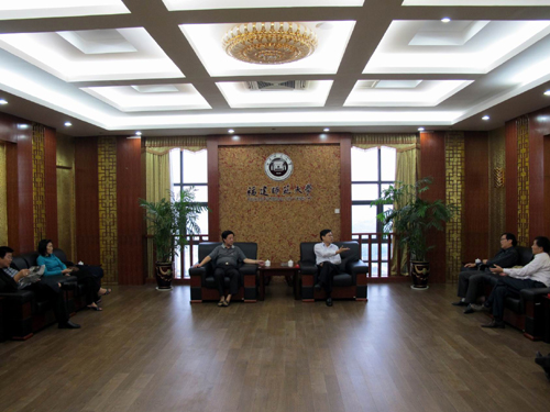 戴宏达董事长对福建师大领导的热情接待表示真诚的感谢,对福建师范大学新校区的建设和发展表示十分高兴,衷心地祝愿福建师范大学在新百年征程中创造更加灿烂和辉煌的成绩。