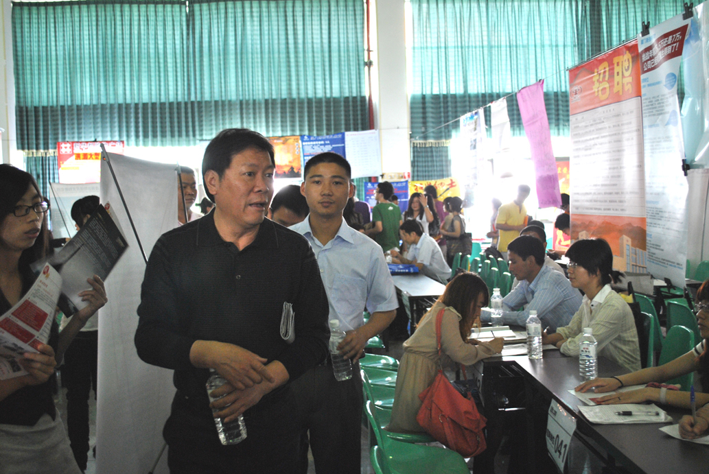 上午, 2011届毕业生春季校园招聘会在我院学生活动中心举办,本次毕业生春季校园招聘会是我院与大泉州人才网携手打造的又一次毕业生双选“盛宴”。安踏(中国)有限公司、劲霸男装股份有限公司、九牧王股份有限公司、利郎(中国)有限公司、福建恒利集团、福建高科日化集团有限公司等100余家企业前来招聘,提供了千个工作岗位。学院院长郭丹教授、党委常务副书记林国庆、党委副书记陈振祯等深入招聘会现场,亲切看望了招聘单位人员,关切询问了毕业生的就业情况。