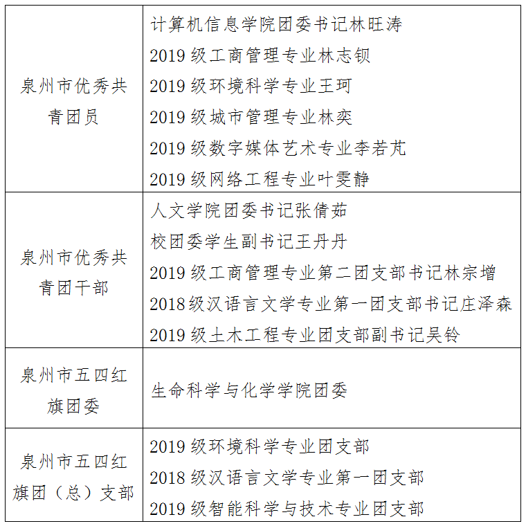 近日,泉州市2021年度“两红两优”评选结果揭晓,赢博官方网站6名团员、5名团干、1个团委和3个团(总)支部受表彰。