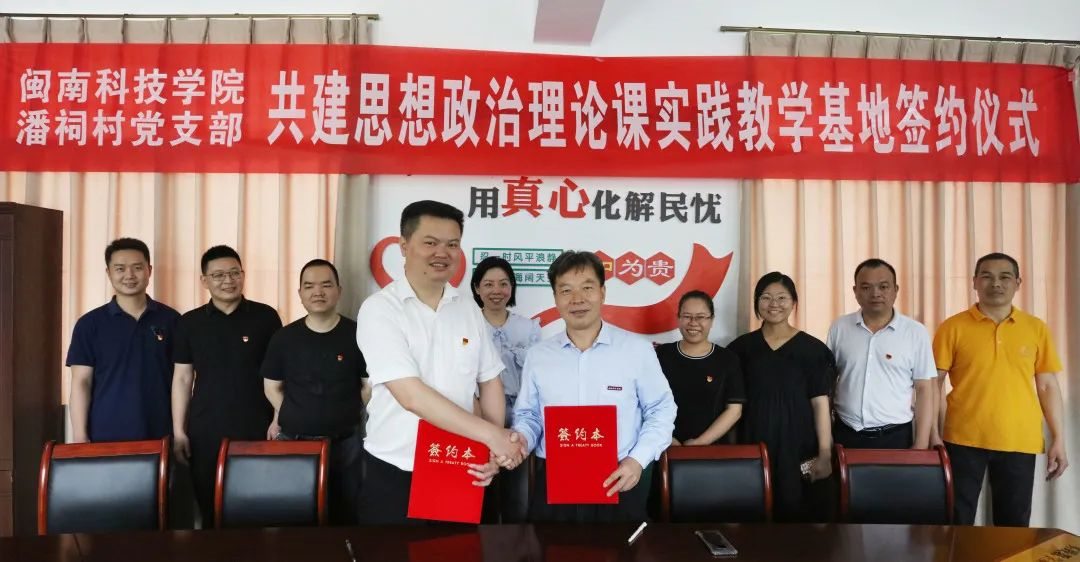 随后,马克思主义学院与潘祠村举行共建“思政理论课实践教学基地”签约仪式,校地双方将依托各自优势,以开展实践教学、党史研究、志愿服务等活动为载体,同频共振、同向发力,在青年学生中赓续红色血脉,传承红色文化,培养社会主义法治建设者和接班人。签约仪式后,双方就如何将红色资源融入思政课教学进行了广泛交流与探讨。