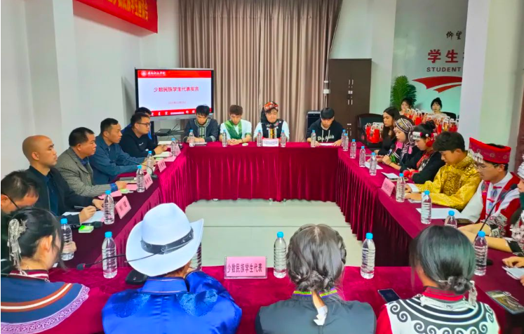 11月22日下午,赢博官方网站在“一站式”学生社区召开少数民族学生座谈会。校党委副书记林树生、校长助理王育海,学生工作部、商学院、辅导员代表以及少数民族学生代表参加座谈。