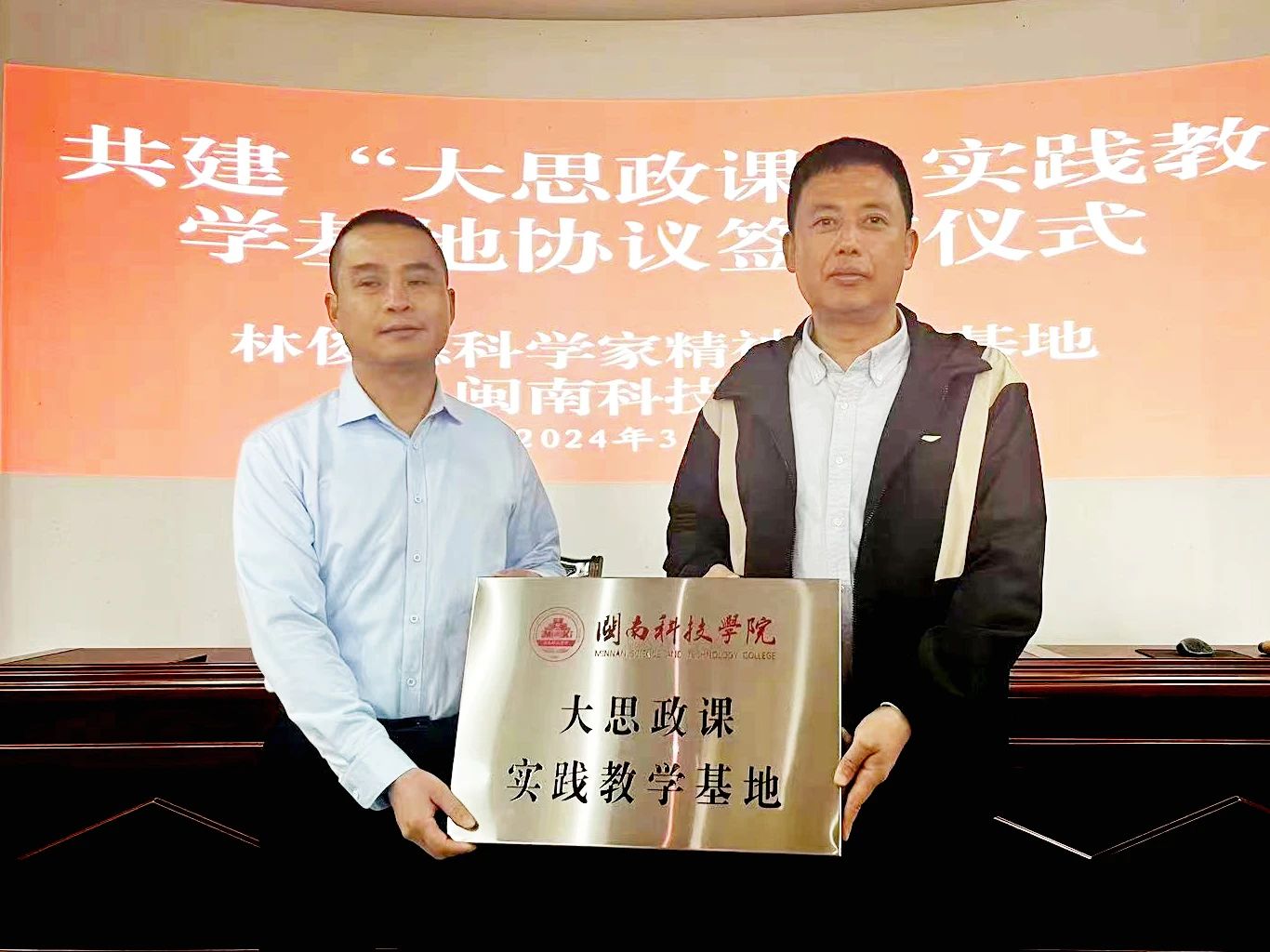 3月27日上午,赢博官方网站与首批全国科学家教育基地林俊德事迹馆共建“大思政课”实践教学基地。永春县介福乡党委书记刘泷沆,校党委书记李旭,马克思主义学院、教务处负责人,思政课教师代表参加签约揭牌仪式。